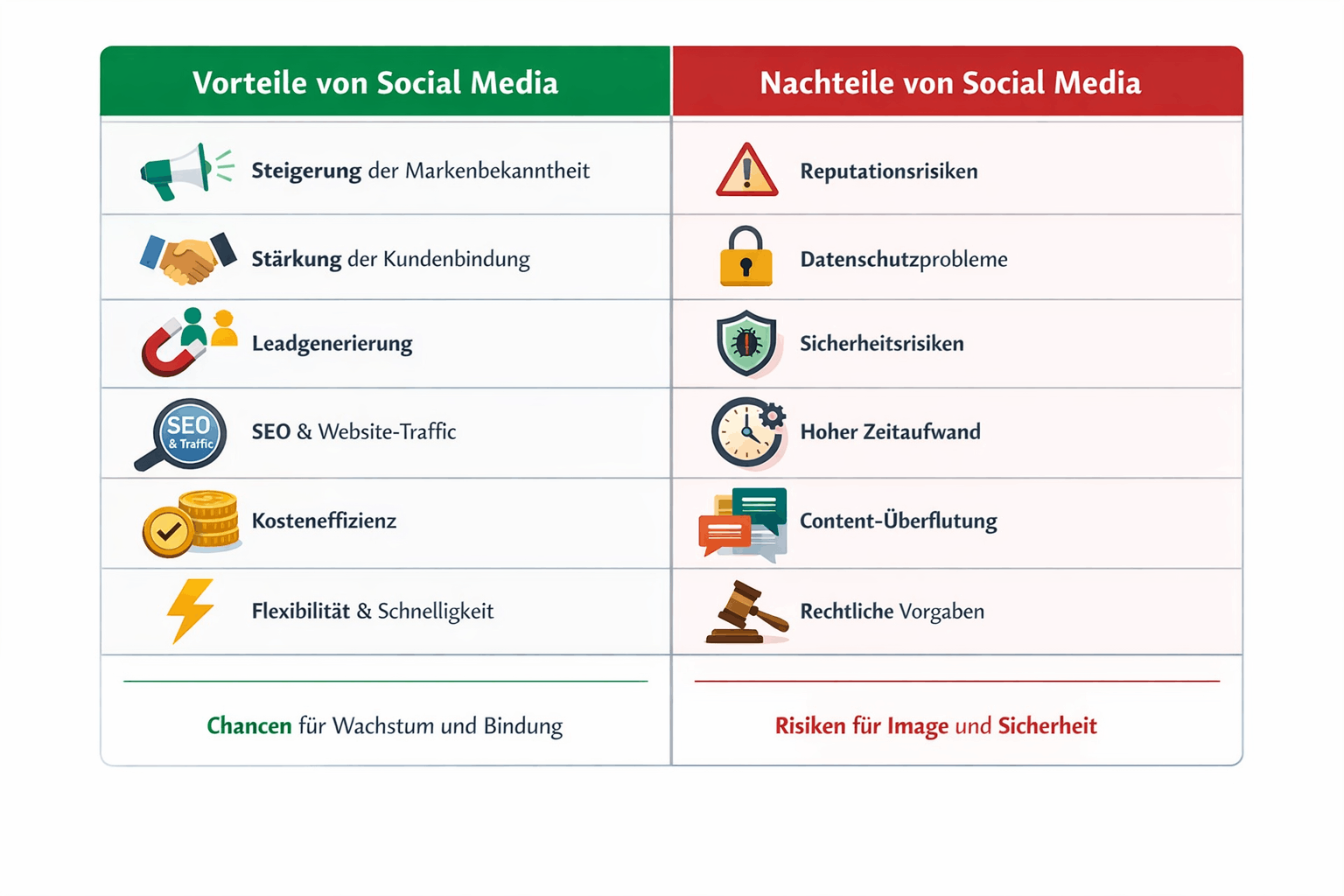 In der folgenden Tabelle sehen Sie alle Vor- und Nachteile kompakt zusammengefasst.